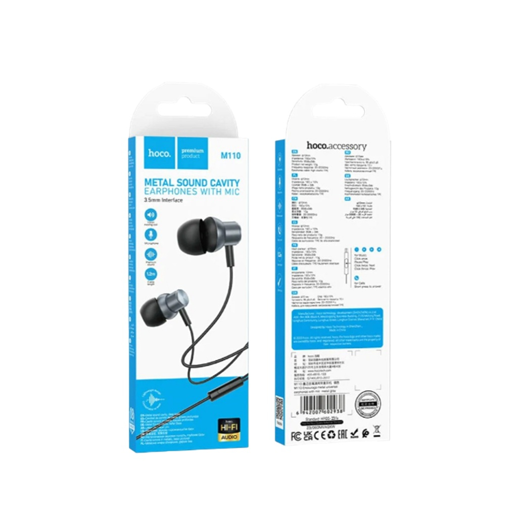 Наушники внутриканальные Hoco М110 Jack 3.5 мм, 1.2 м, черные