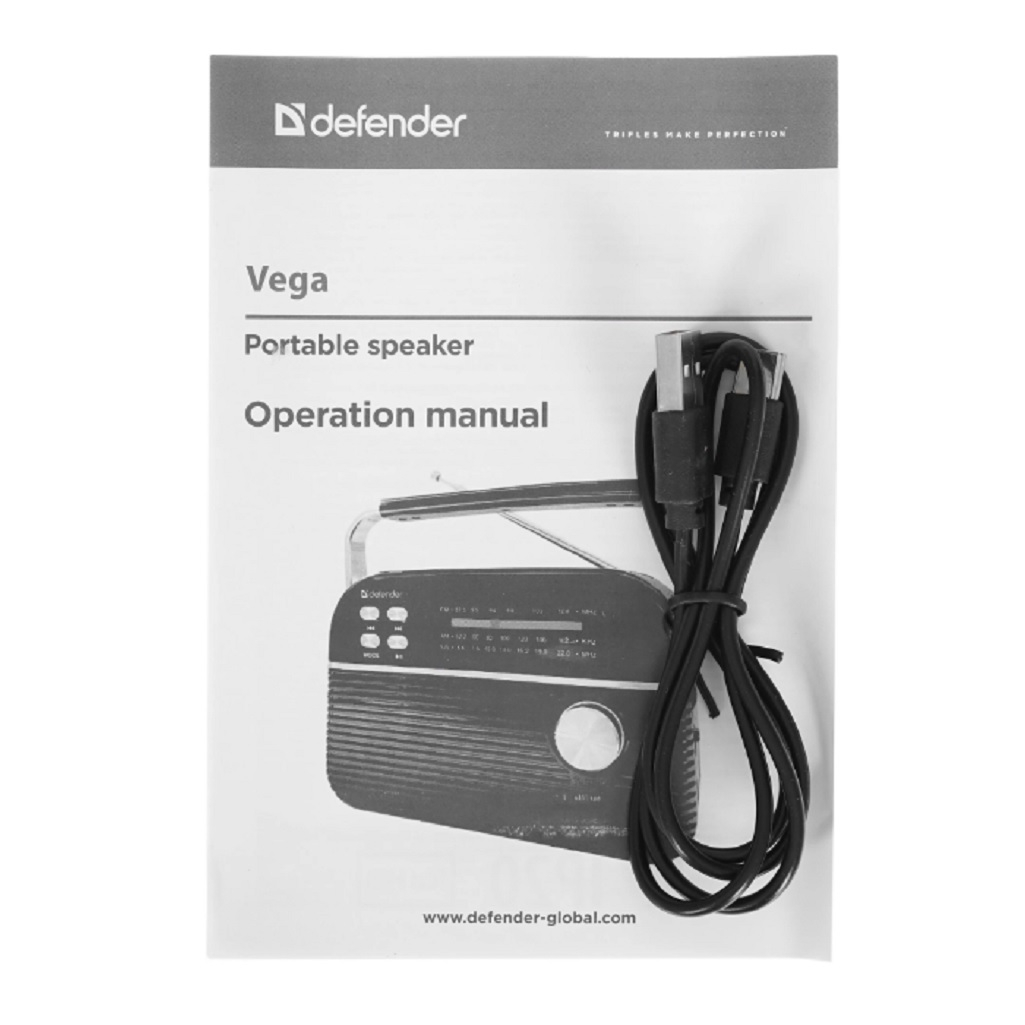 Описание радиоприемника Defender Vega microSD bluetooth, питание - аккумулятор, черного