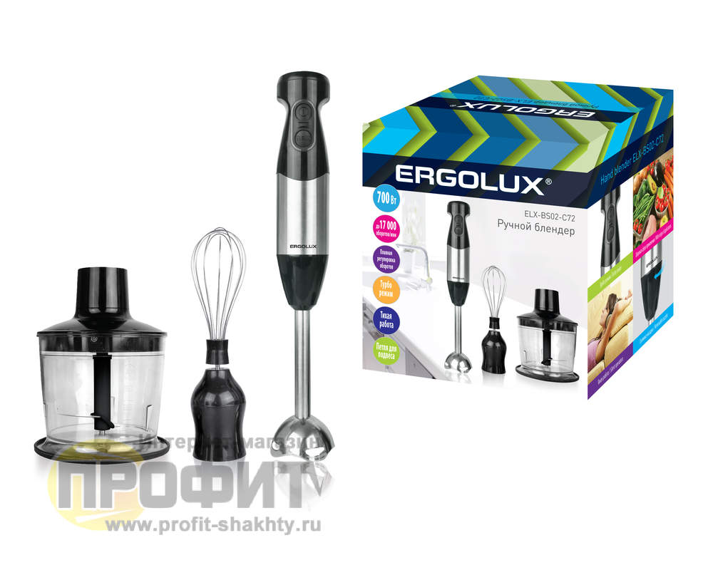 - Блендер ERGOLUX ELX-HB-BS02-C72 (серебристо-черный)