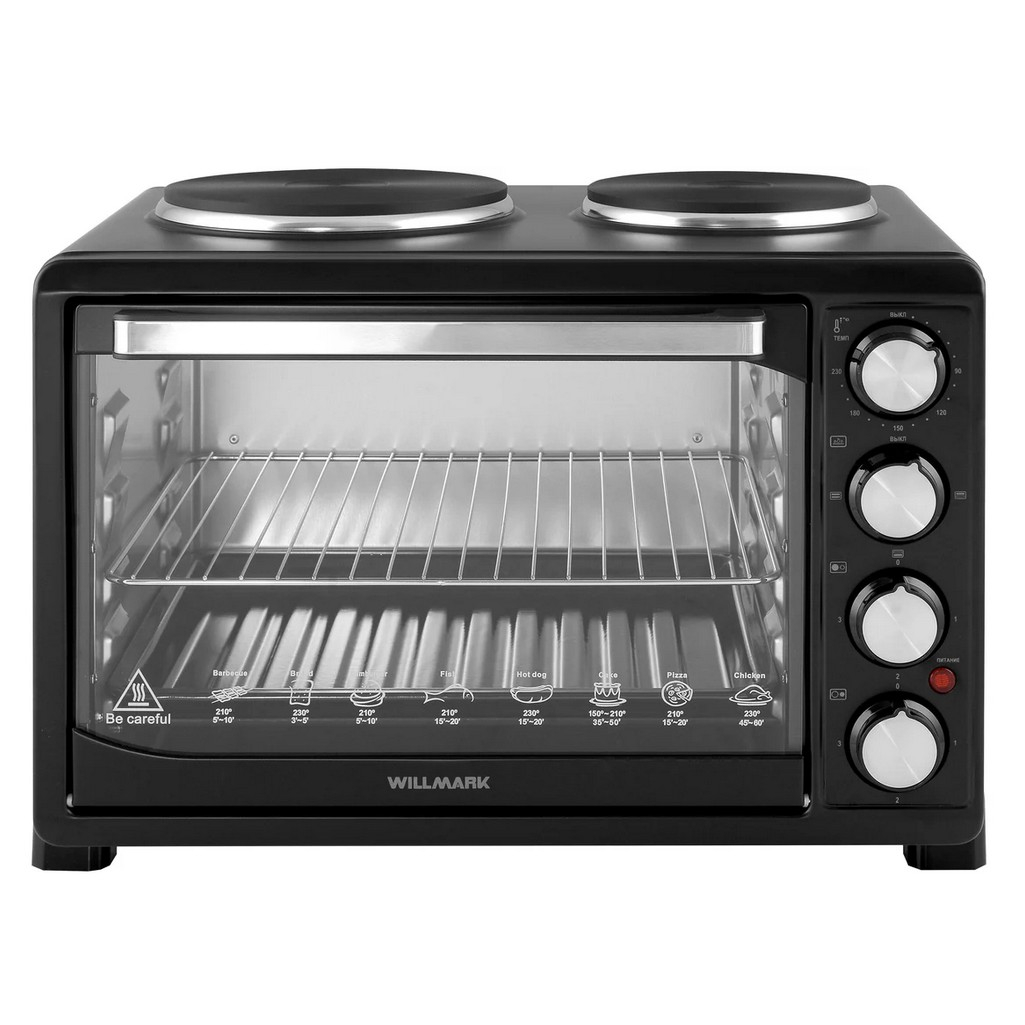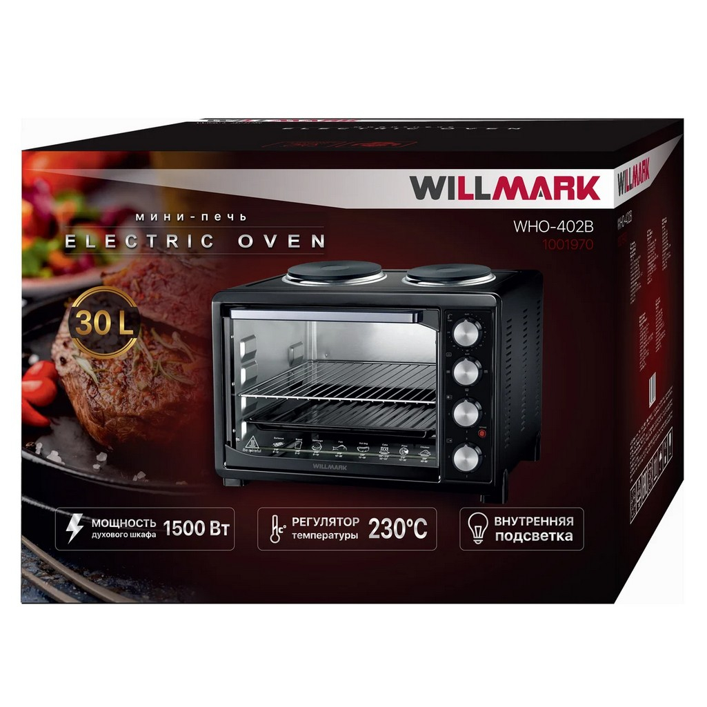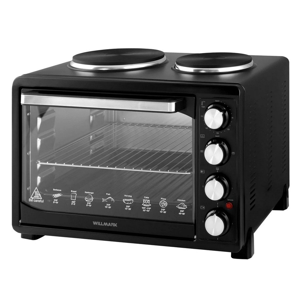 - Мини-печь электрическая WILLMARK WHO-402B (черная) 2 конфорки 30 литров духовка.