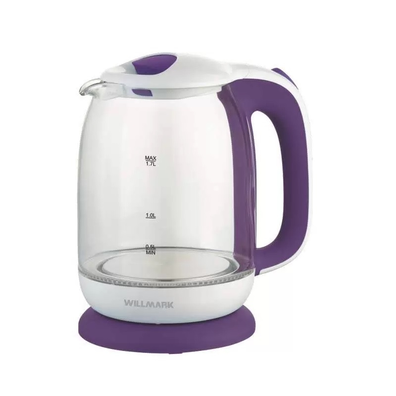 Чайник электрический WILLMARK WEK-1704G 1.7л, 2.2кВт, стекло, белый-фиолетовый