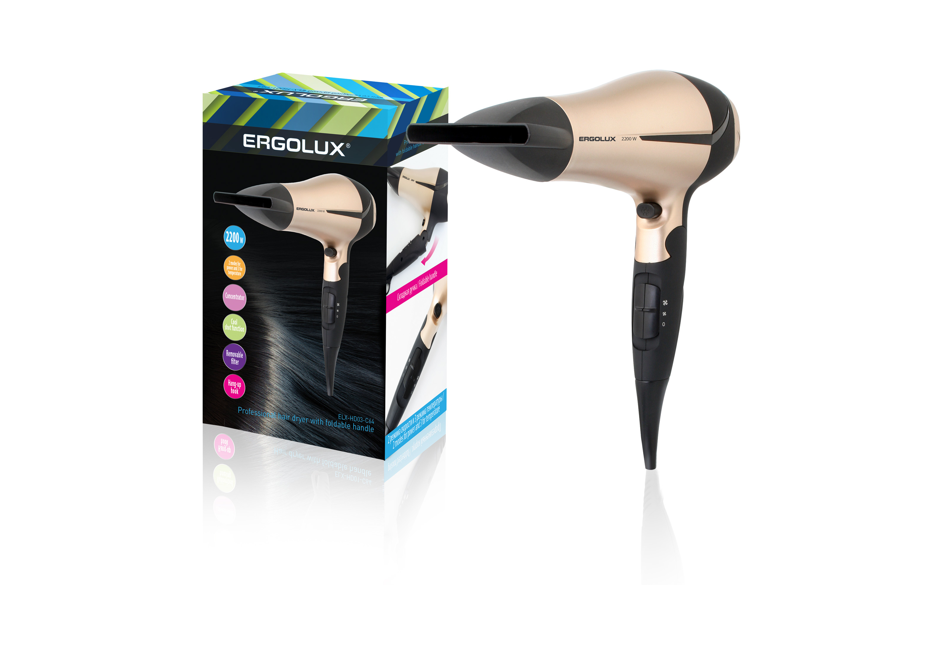 - Фен ERGOLUX ELX-HD03-C64 складная ручка черный/золото 2200Вт