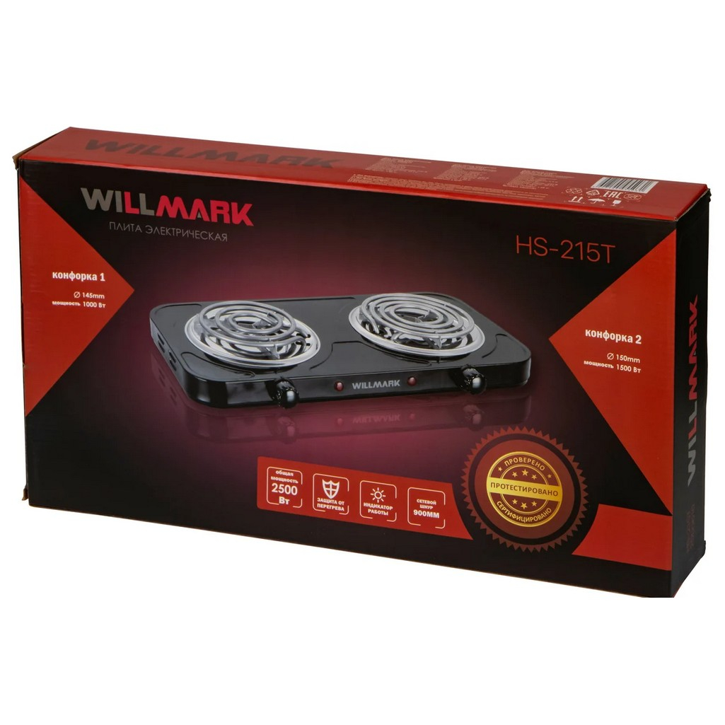 Электроплитка настольная Willmark НS-215Т, 2 конфорки, цвет черный, 2.5 кВт