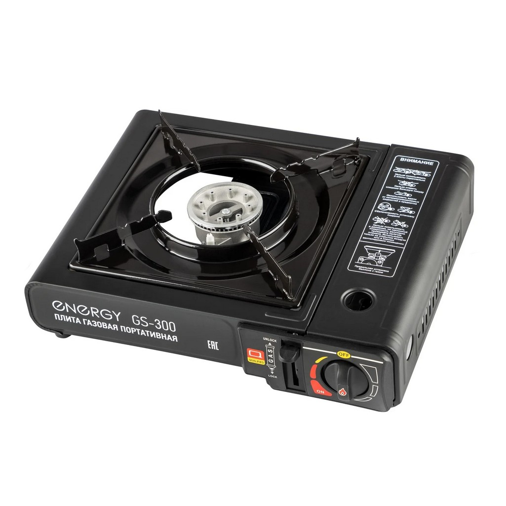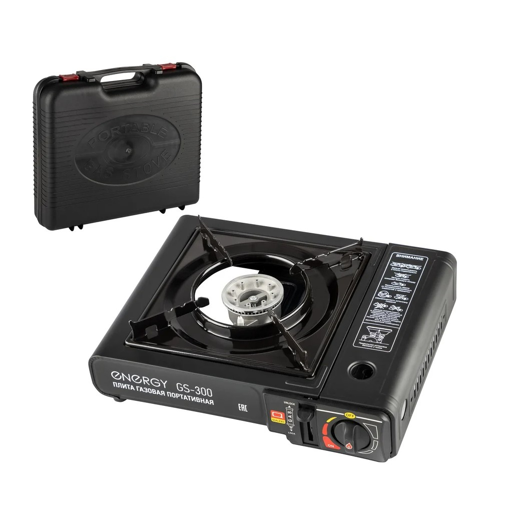 - Плита газовая ENERGY GS-300 туристическая с пьезоподжигом 1 конфорка, кейс