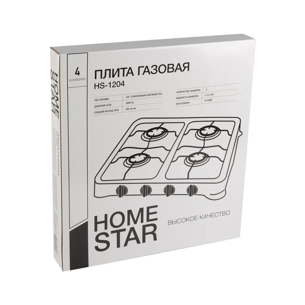 Плита газовая настольная Homestar HS-1204 212166, 4 конфорки, цвет черный