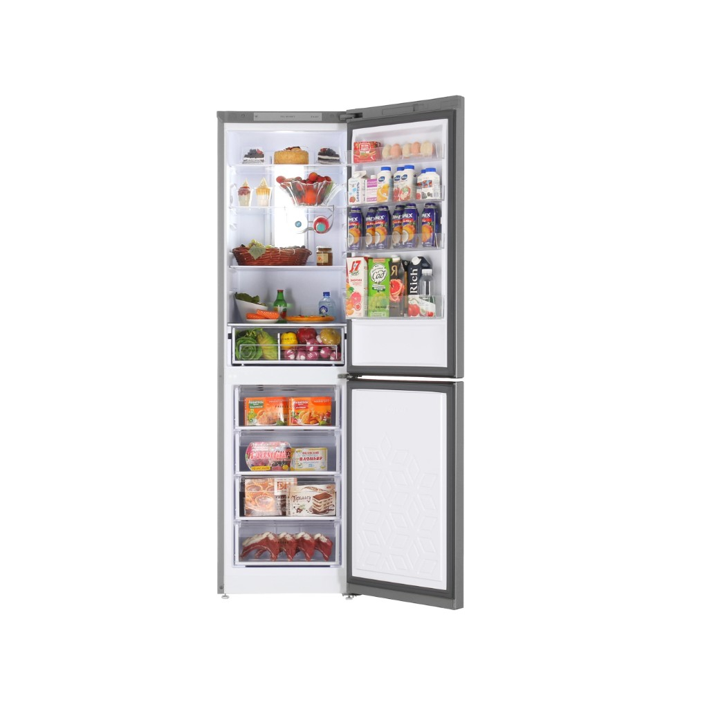 Морозильная камера отличается продуманной организацией пространства с выдвижными контейнерами для удобного хранения замороженных продуктов. Энергоэффективный инверторный компрессор обеспечивает экономичное энергопотребление при низком уровне шума, что делает эксплуатацию комфортной.