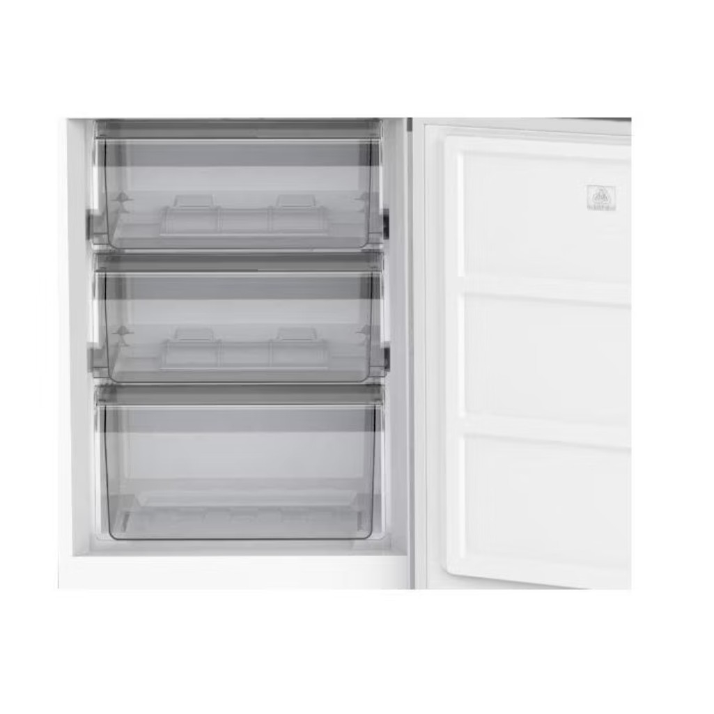 Двери холодильника перенавешиваемые, что позволяет удобно разместить его в любом уголке кухни в зависимости от планировки. Внутреннее пространство организовано продуманно: полки и контейнеры обеспечивают удобное хранение продуктов разного размера. Холодильник сочетает в себе энергоэффективность, бесшумную работу и долговечность, делая его отличным выбором для современного дома.