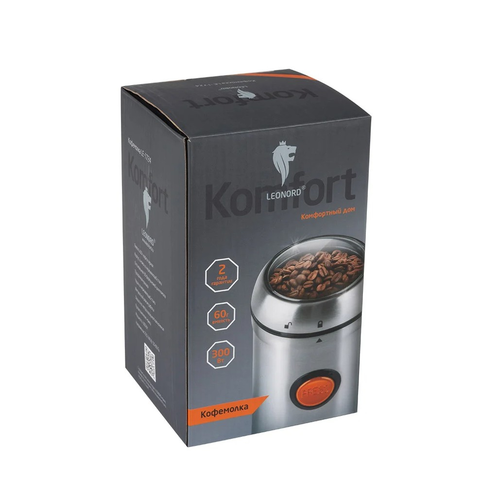 Кофемолка электрическая Leonord LE-1724 серебристого цвета с мощностью 300 Вт предназначена для бытового применения и позволяет быстро измельчить кофейные зерна или специи, экономя ваше время и силы. Благодаря своей простоте в использовании, она не требует специальных навыков, что делает её доступной для каждого. Современный дизайн кофемолки украсит любой интерьер, добавляя нотку стиля и функциональности на вашу кухню. Прочный и долговечный механизм обеспечивает равномерное измельчение, сохраняя аромат и вкус кофе. Компактные размеры и удобная конструкция делают эту модель незаменимым помощником для любителей свежего и ароматного кофе, а также для приготовления различных специй.