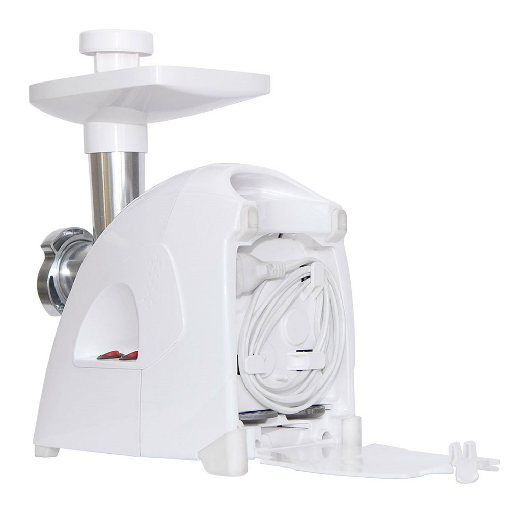 Мясорубка электрическая Аксион М41.02, пластик, 1700 Вт, белый предназначена для измельчения мяса. Мясорубка отличается высокой производительностью: до 2 кг фарша в минуту. Мощность мясорубки составляет 1700 Вт. Мясорубка произведена из пластика. Лоток для мяса изготовлен из высококачественного пластика, нескользящие ножки прочно фиксируют агрегат на поверхности стола. Толкатель - пластиковый. Агрегат имеет 1 скорость и опцию реверса, оснащен защитой от перегрева. В комплект постави входят: соковыжималка для цитрусовых; соковыжималка шнековая; овощерезка; 1 решетка из нержавеющей стали с отверстиями 4,9 мм; нож из нержавеющей стали с саблевидными режущими кромками, 1 сменный пластиковый колпачок. Для удобства хранения прибор оснащен специальным углублением для шнура.