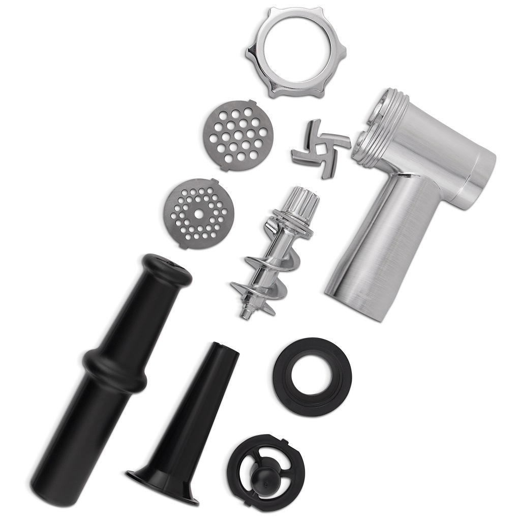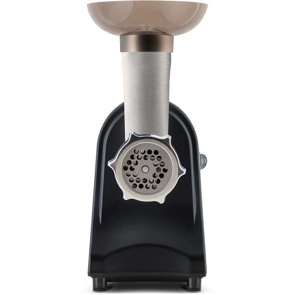Мясорубка электрическая Vitek VT-3636 (MC), пластик, 1700 Вт, серебро с черным предназначена для измельчения мяса. Мясорубка отличается высокой производительностью: до 1.7 кг фарша в минуту. Мощность мясорубки составляет 1700 Вт. Материал корпуса - металл и пластик. Лоток для мяса изготовлен из высококачественного пластика, нескользящие ножки прочно фиксируют агрегат на поверхности стола. Толкатель - пластиковый. Агрегат имеет 1 скорость и опцию реверса. Благодаря передовой технологии заточки и шлифовки MagniFit, лезвия ножей и диск устройства плотно прилегают друг к другу, обеспечивая равномерную текстуру фарша. В комплект входят два диска из нержавеющей стали, насадка для сосисок и кеббе, позволяющая готовить купаты и другие блюда восточной кухни. Для удобства хранения прибор оснащен специальным углублением для шнура.