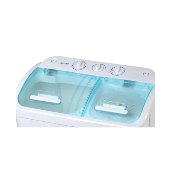 Стиральная машина Optima МСП-40Т активаторного типа позволяет стирать вещи, даже если в доме не предусмотрено центрального водоснабжения и канализации. Машина вмещает до 4 кг белья, управление осуществляется при помощи механических регуляторов. Отработанная вода сливается при помощи шланга и сливного насоса. Машина снабжена тремя программами: стандартная и деликатная стирка, слив.