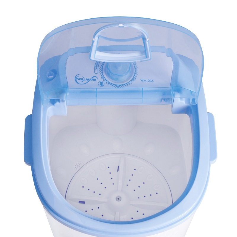 Стиральная машина WILLMARK WM-20A - компактный мобильный вариант для быстрой повседневной стирки белья. Это стиральная машина малютка - полуавтомат с вертикальным типом загрузки, в который можно загрузить до 2 кг сухого белья для стирки. Программ стирки две, в их числе деликатная для детских вещей или вещей из таких материалов как шерсть, шёлк. Если Вы забыли сразу что-то забросить в машинку - не беда, есть возможность дозагрузки белья. Данная модель обеспечивает великолепный результат стирки и при этом, значительно экономит потребление электроэнергии и воды. Отжима нет. Стиральная машина WILLMARK WM-20A отличается простотой и неприхотливостью в работе, малошумна и имеет реверс для предотвращения скручивания белья при стирке.