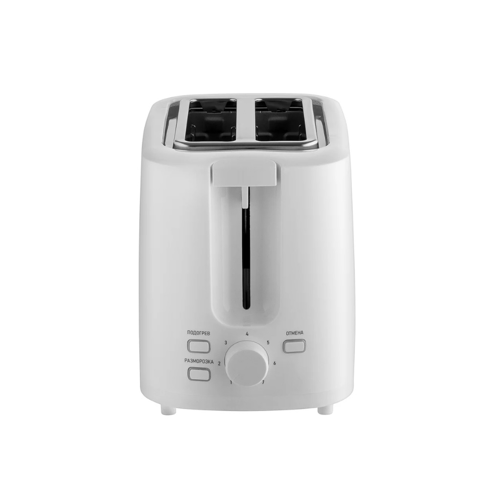 Тостер очень прост в эксплуатации, он не требует особенных навыков, оснащен устойчивым корпусом конструкции, благодаря этому удобен в использовании. Модель предусматривает выбор желаемой степени обжаривания из 7ми режимов, а также функцию подогрева и разморозки хлеба или тостов, есть функция отмены, с ее помощью вы сможете остановить приготовление в любое время, нажав на кнопку. Корпус тостера выполнен в лаконичном белом цвете, имеет сдержанный и эстетичный внешний вид, поэтому впишется в любой интерьер кухни и будет радовать Вас ароматными тостами по утрам.