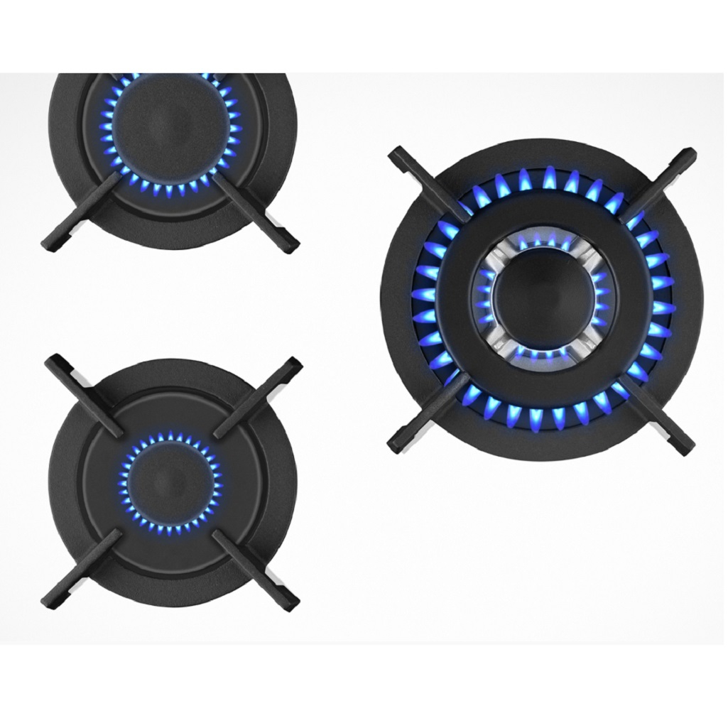 Панель варочная газовая Weissgauff HG 430 WGV, V0153565, белый оснащена автоматическим электроподжигом и мощной WOK-конфоркой. Это одна из самых современных и функциональных моделей с отдельными решетками из высококачественного чугуна. Белое закаленное стекло не только выглядит элегантно, но и устойчиво к механическим повреждениям и температурным перепадам. Решетка из чугуна гарантирует высокое качество, надежность и долгий срок службы. Их изысканный дизайн не только дополняет общий стиль варочной панели, но и облегчает ее очистку и уход. Weissgauff уделяет особое внимание каждой детали, что делает панели устойчивыми и удобными в использовании. WOK-конфорка мощностью 3,5 кВт быстро нагревает даже самую крупную посуду. Рукоятки Hi-Tech подчеркивают современный дизайн модели. Они защищены от перегрева и деформации при длительном использовании. Автоматический электроподжиг встроен в каждую рукоятку, позволяя легко зажечь конфорку одним нажатием.