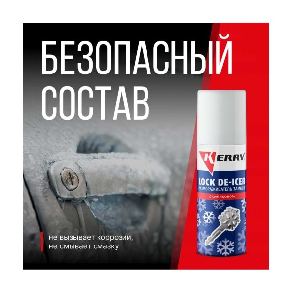 Размораживатель замков Kerry 75мл 25779 быстро и эффективно размораживает механизмы замков автомобиля. Не смывает смазку, препятствует дальнейшему обледенению, не вызывает коррозии. Может использоваться в быту для размораживания замков любых модификаций.