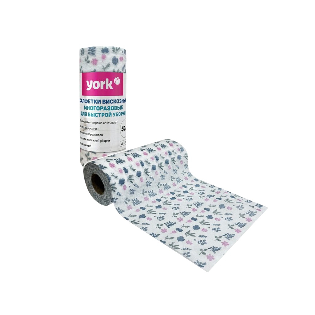 Салфетки вискозные York Узор 020500 многоразовые для быстрой уборки, в рулоне, 25х30 см, 50 штук