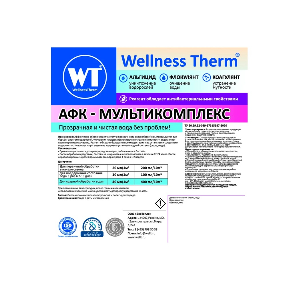 Технические характеристики средства АФК-Мультикомплекс Wellness Therm для борьбы с ростом водорослей, 1 л