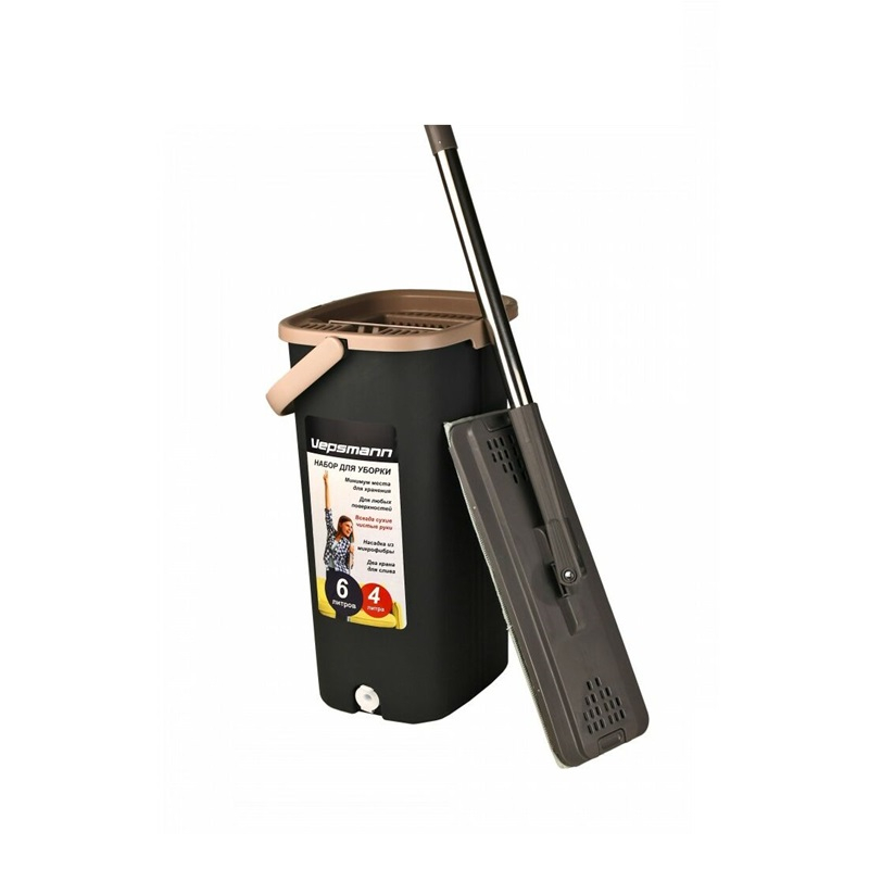 - Швабра VEPSMANN VN-015с ведром (ручка скл 120см, насадка м/ф 12*32см лип,10л(6+4),2слива),графит