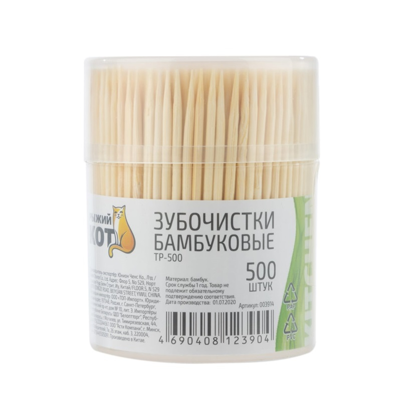 - Зубочистки РЫЖИЙ КОТ бамбуковые 500шт/уп