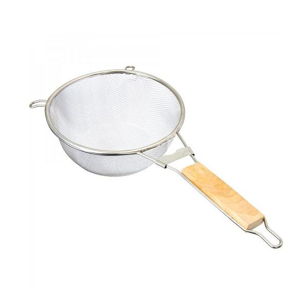 Сито выполнено из нержавеющей стали, отличается прочностью и долговечностью, не подвергается коррозии и отвечает всем гигиеническим нормам и требованиям. Сито используется для просеивания муки, а также удобно для промывания мелких ягод, таких как смородина, вишня, клубника, малина и т.д. Сито оснащено удобной ручкой с деревянной вставкой.
