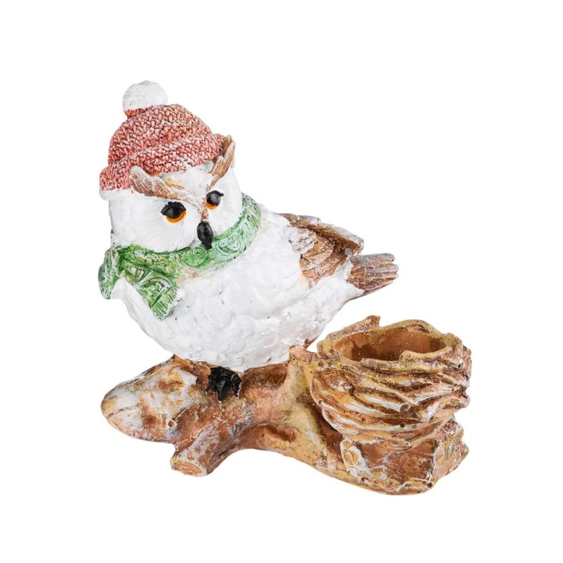 Подсвечник Совенок у гнезда поможет украсить помещение к предстоящим праздникам. Размещается на полу под елью в окружении подарочных коробок. Может устанавливаться на стол или полку. Не выгорает и не тускнеет со временем. Легко очищается от пыли или грязи влажной салфеткой и неабразивными средствами бытовой химии.