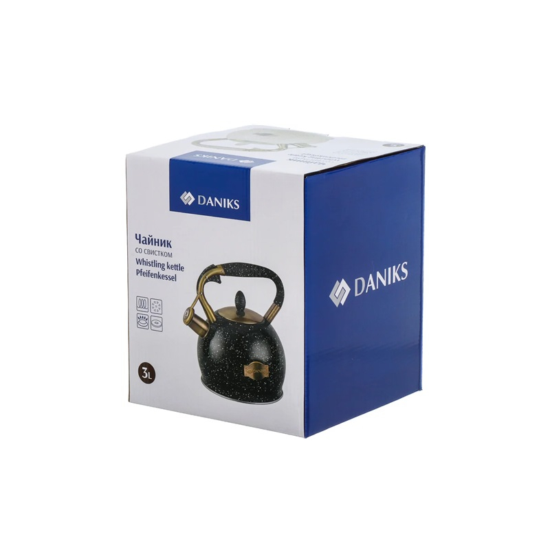 - Чайник DANIKS GS-04517G нержавеющая сталь со свистком индукция чёрный 3л