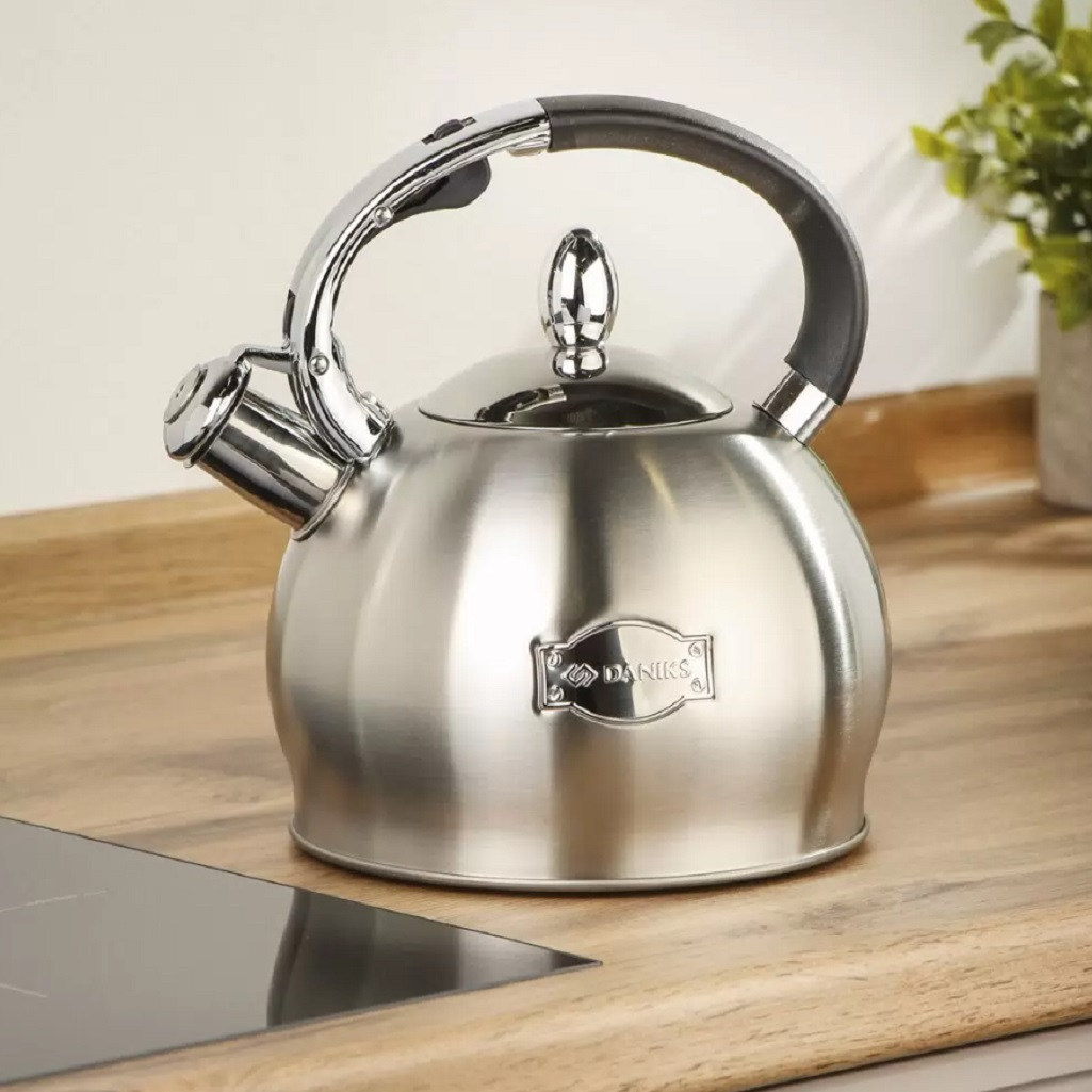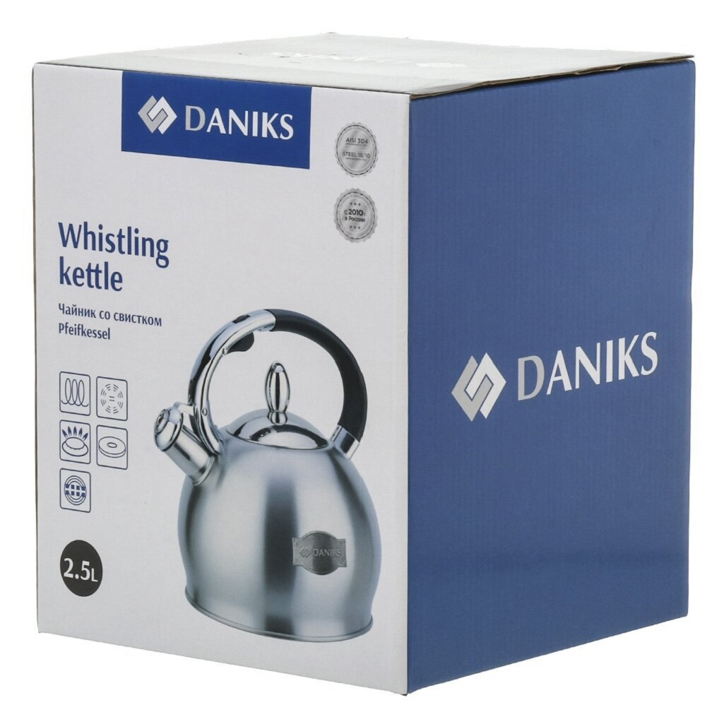 - Чайник DANIKS PR-2301 нержавеющая сталь со свистком зеркальный, индукция 2,5л