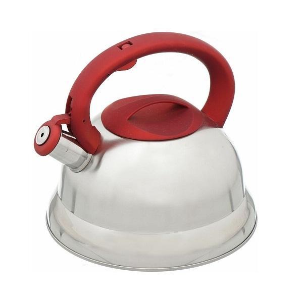 - Чайник DANIKS MSY-013R нержавеющая сталь со свистком матовый бакелитовая ручка красный 2,8л