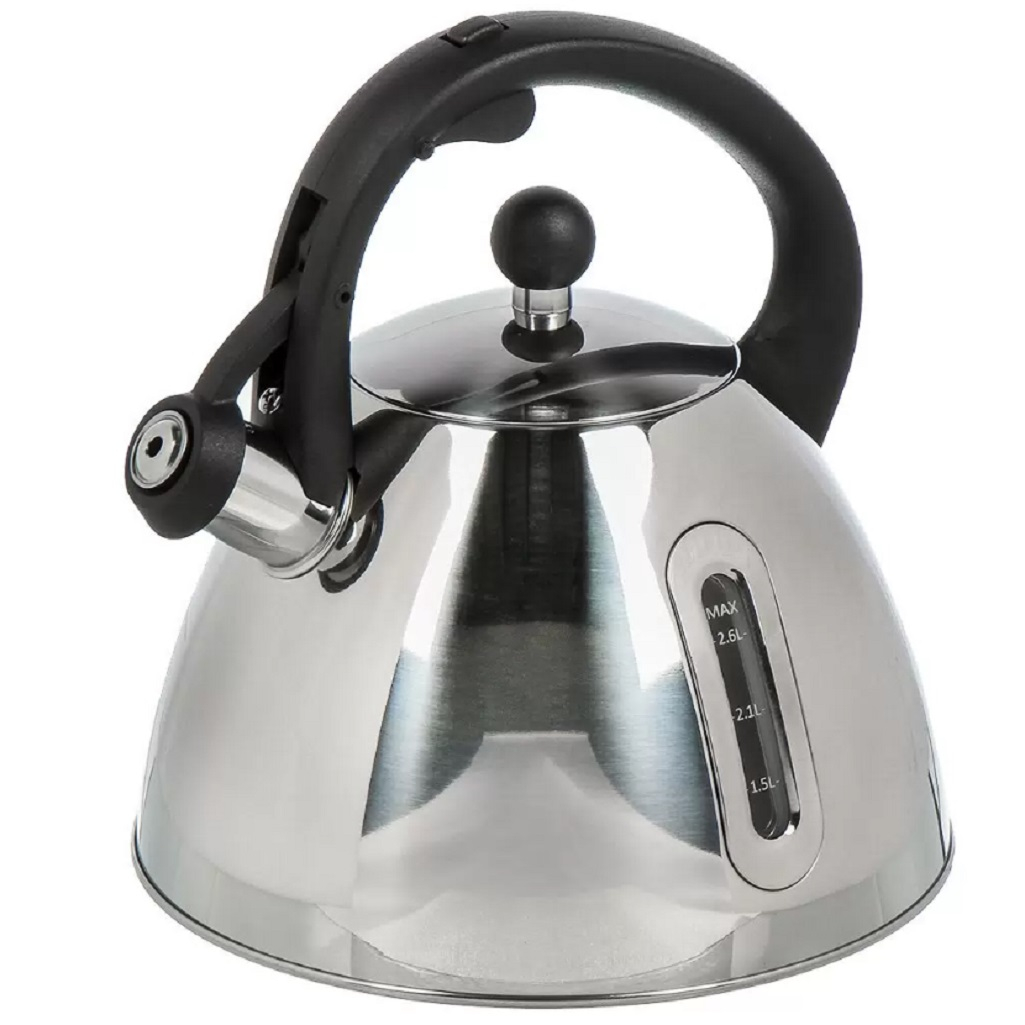 Чайник со свистком Rashel М-7193 нержавеющая сталь, мерная шкала, серебристый, индукция, 3 л