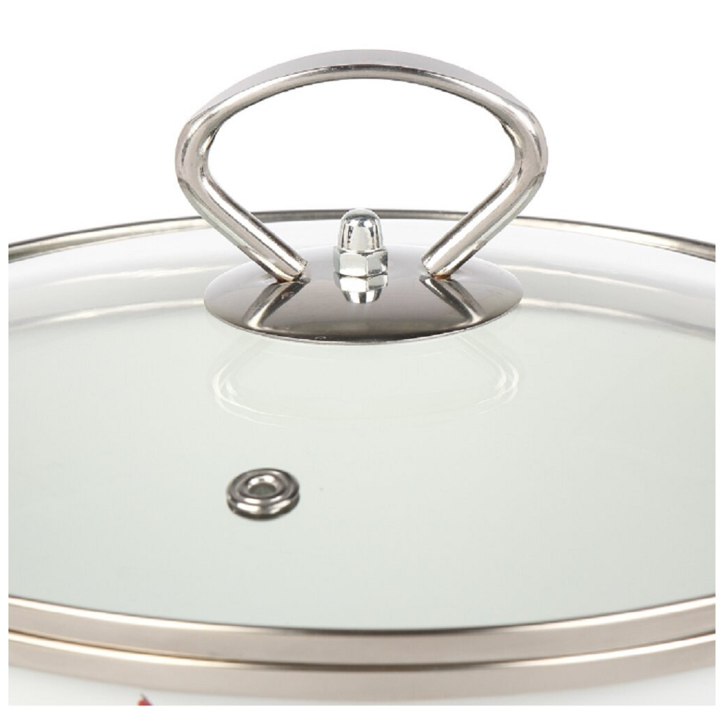 Эстетичный белый цвет кастрюли Daniks Iris гармонично впишется в любой кухонный интерьер, добавляя нотку изысканности и стиля. Прозрачная стеклянная крышка позволяет контролировать процесс приготовления без необходимости ее поднимать, сохраняя тепло и аромат блюд. Толстое дно обеспечивает равномерное распределение тепла, что способствует более быстрому и качественному приготовлению пищи.