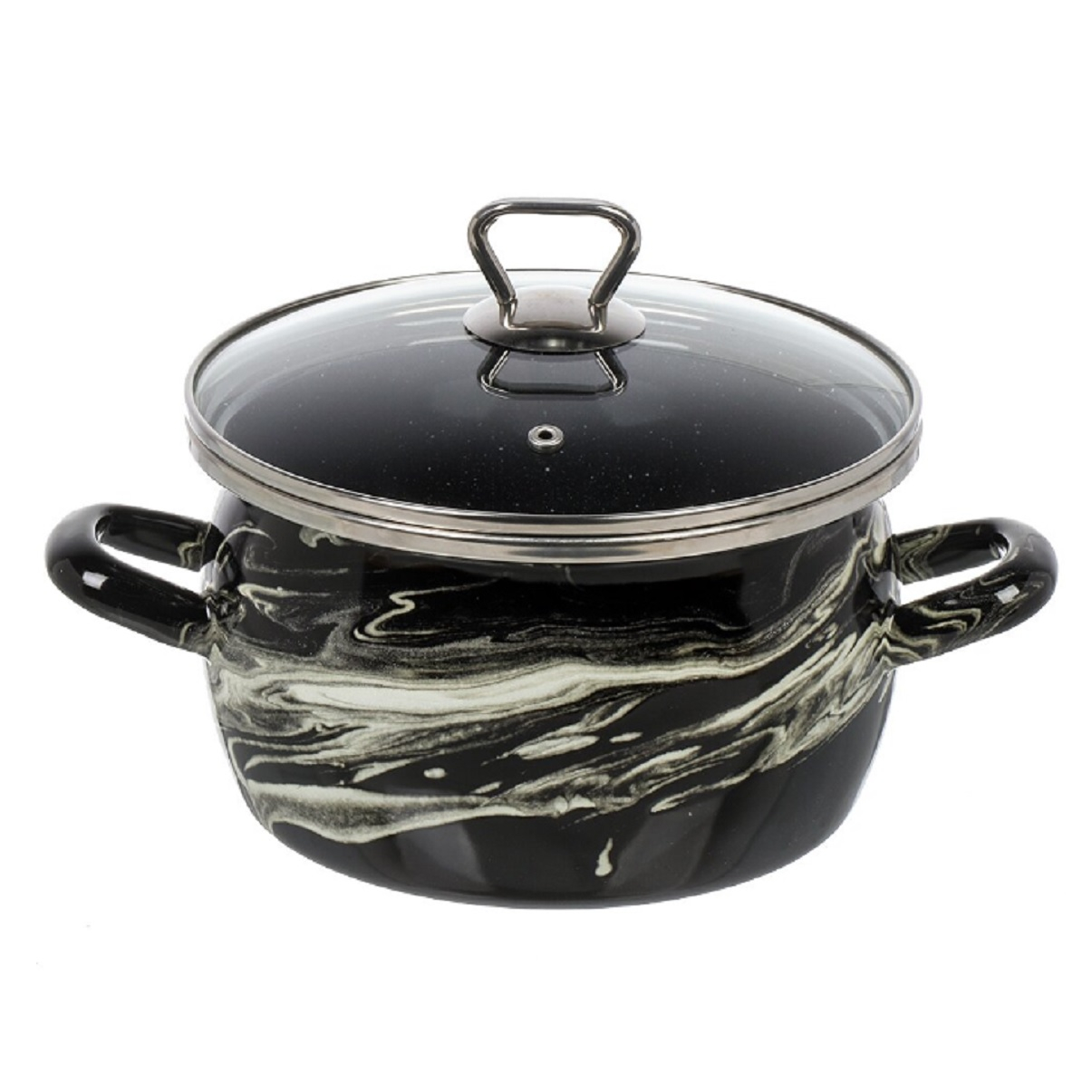 Кастрюля эмалированная 3 л, Сантэкс Шейк, черно-белая