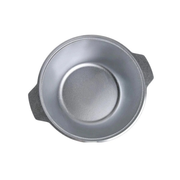 Кастрюля экологически безопасна, т.к. полностью выполнена из алюминия. Ее можно использовать в духовом шкафу, она легко отмывается от жира и остатков пищи, т.к. еда во время приготовления не пригорает. Широко применяется для жарки мяса, запекания или тушения овощей.
