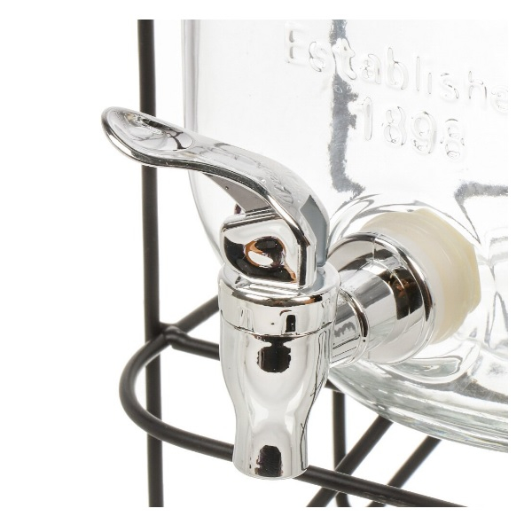 Лимонадница B090058 прозрачная с подставкой 4 л - аксессуар для торжественного мероприятия, она эстетично смотреться на праздничном столе. Гости могут самостоятельно наполнять бокалы напитками по вкусу.