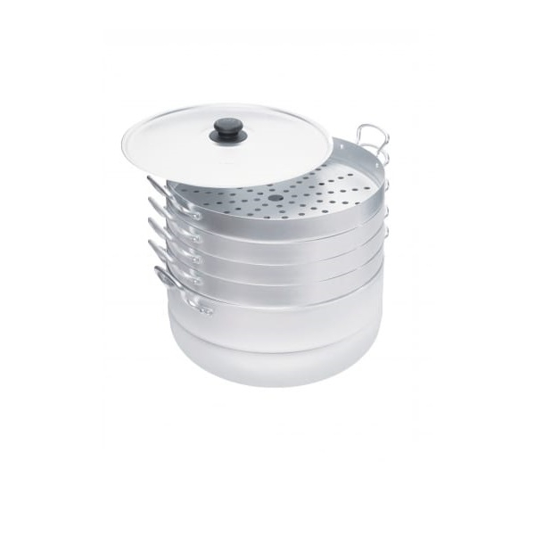 Манты-казан Калитва алюминиевый с 4-мя сетками 13л предназначен для приготовления различных блюд на пару: манты, пельмени, хинкали, вареники, тефтели, котлеты, рулеты, штрудели и другие изделия из мяса, теста, овощей. Модель состоит из алюминиевого корпуса и комплекта сеток для размещения продуктов на разных уровнях. Для равномерного и одновременного приготовления пищи предусмотрены отверстия в дне сеток, которые позволяют распределить пар по всему объему мантоварки. Количество сеток возможно регулировать, посредством добавления или уменьшения.