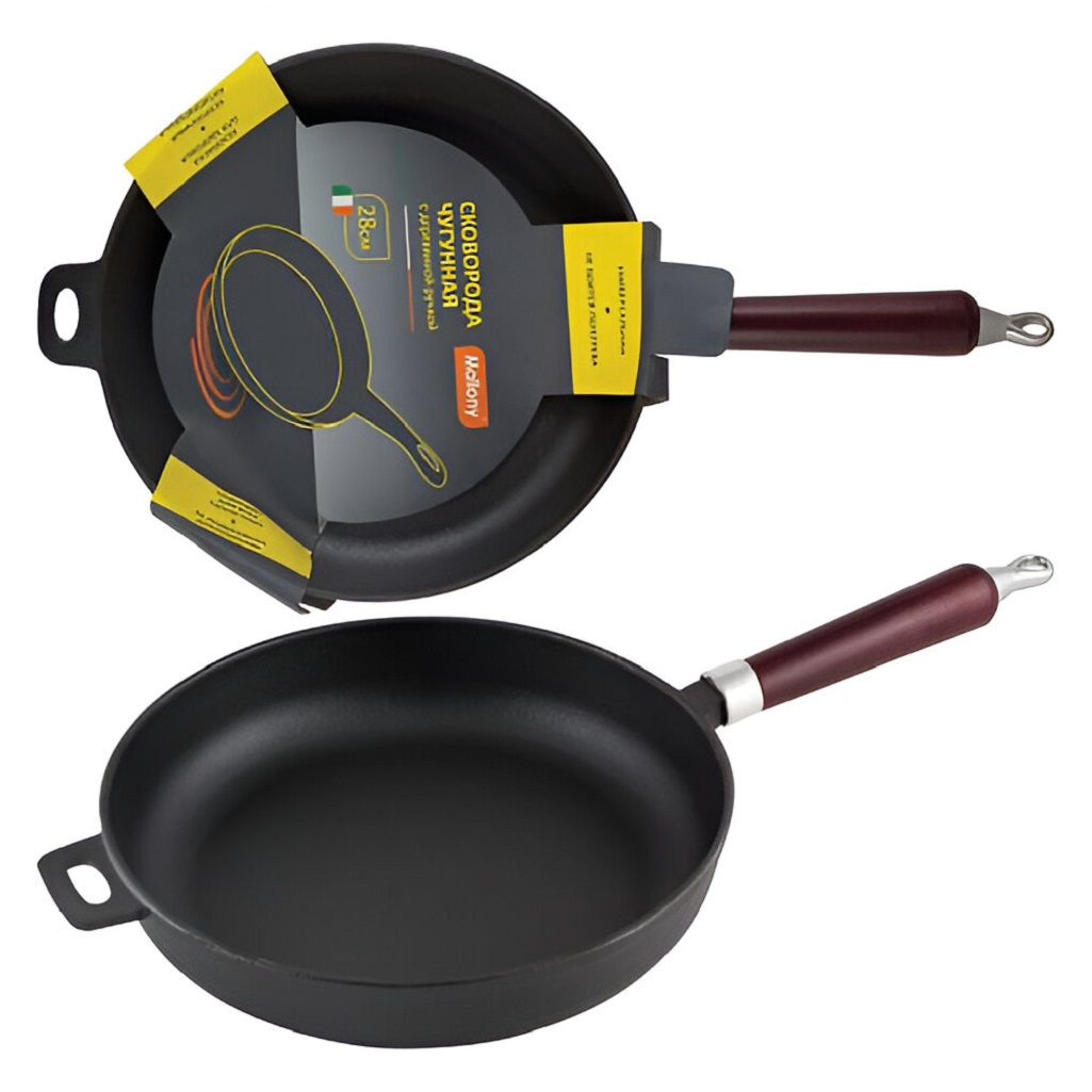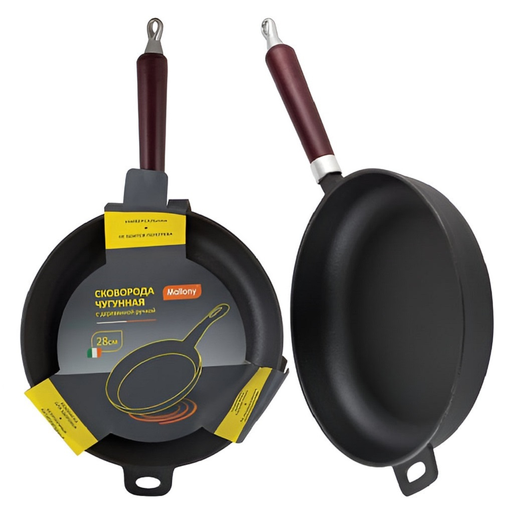 Сковорода чугунная Mallony CIF28-W, 280 мм, с деревянной ручкой