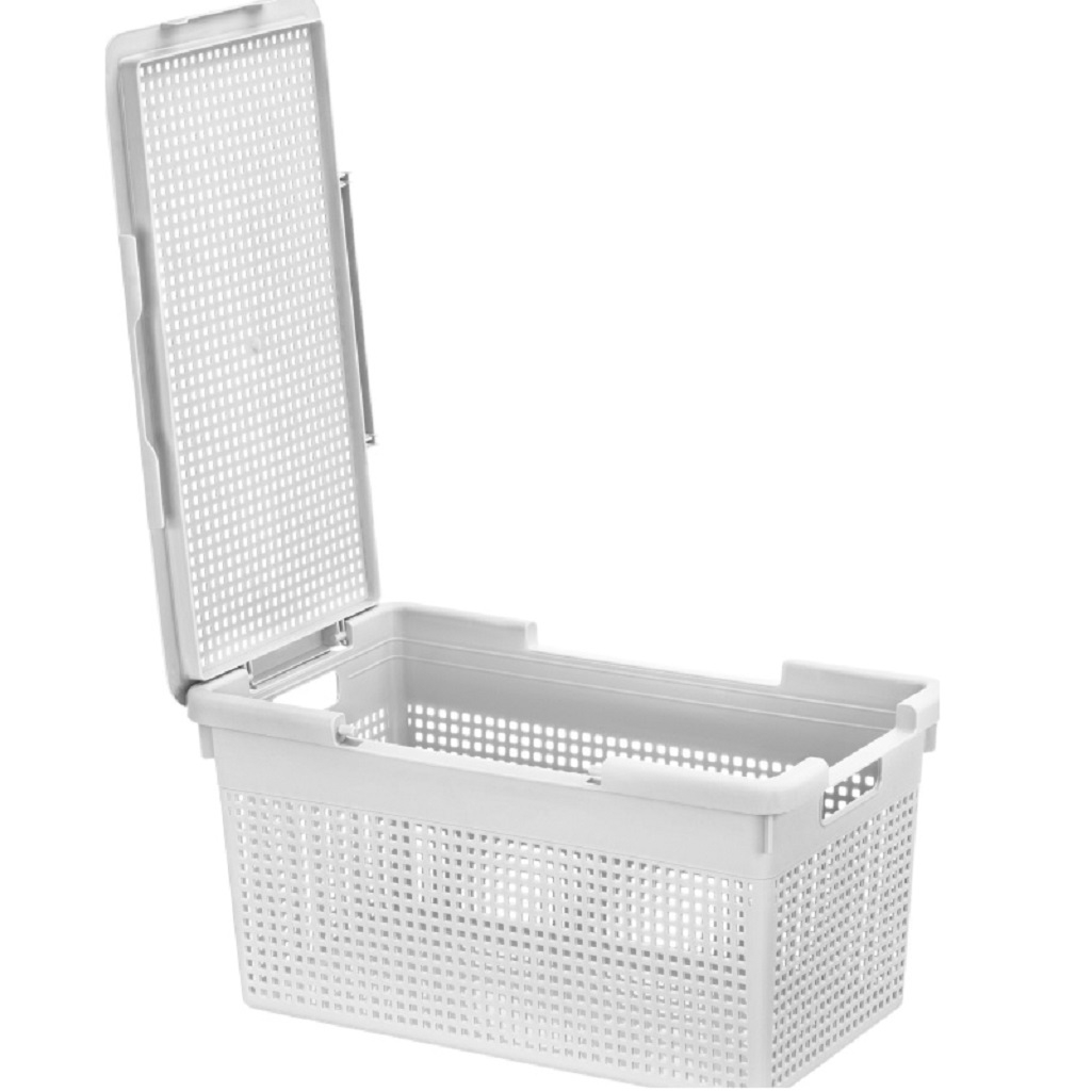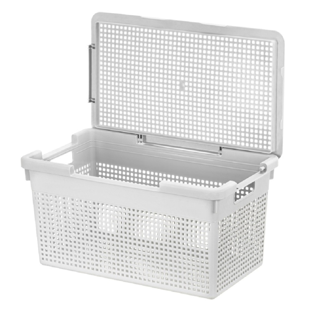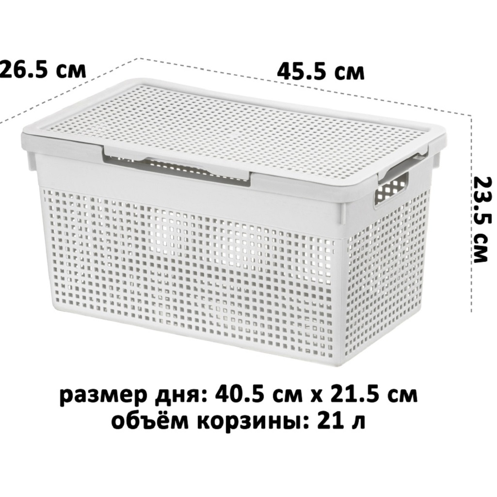 Корзина с крышкой El Сasa Лофт 562108 узкая 812155, 235х265х455 мм, 21 л, светло-серая предназначена для создания уютного и функционального домашнего пространства. Корзина оснащена удобными ручками для переноски, а крышка надёжно фиксируется в двух положениях: по узкой или широкой стороне. Можно легко менять положение крышки в зависимости от потребностей, обеспечивая удобный доступ к содержимому с любой стороны. Благодаря универсальному дизайну, этот бокс идеально впишется в интерьер любой комнаты: гардеробной, ванной или прихожей. Изготовленный из пищевого пластика (полипропилена), органайзер отличается прочностью и лёгкостью. Он не выделяет вредных веществ и абсолютно безопасен для использования на кухне, в детской комнате или в любом другом помещении. В этом универсальном контейнере можно хранить не только овощи и фрукты, но и кухонные принадлежности, бытовую химию и моющие средства. Он также отлично подойдёт для косметики и мелких предметов. Декоративные отверстия обеспечивают доступ воздуха, предотвращая порчу продуктов. Этот контейнер можно использовать для хранения белья, полотенец и других мелочей. Его можно разместить под раковиной в ванной, возле стиральной машины, на полке или в шкафу. Корзина с крышкой El Сasa Лофт 562108 812155 станет незаменимым помощником в офисе для хранения документов и бумаги формата А4, а также в гараже или на даче для инструментов.