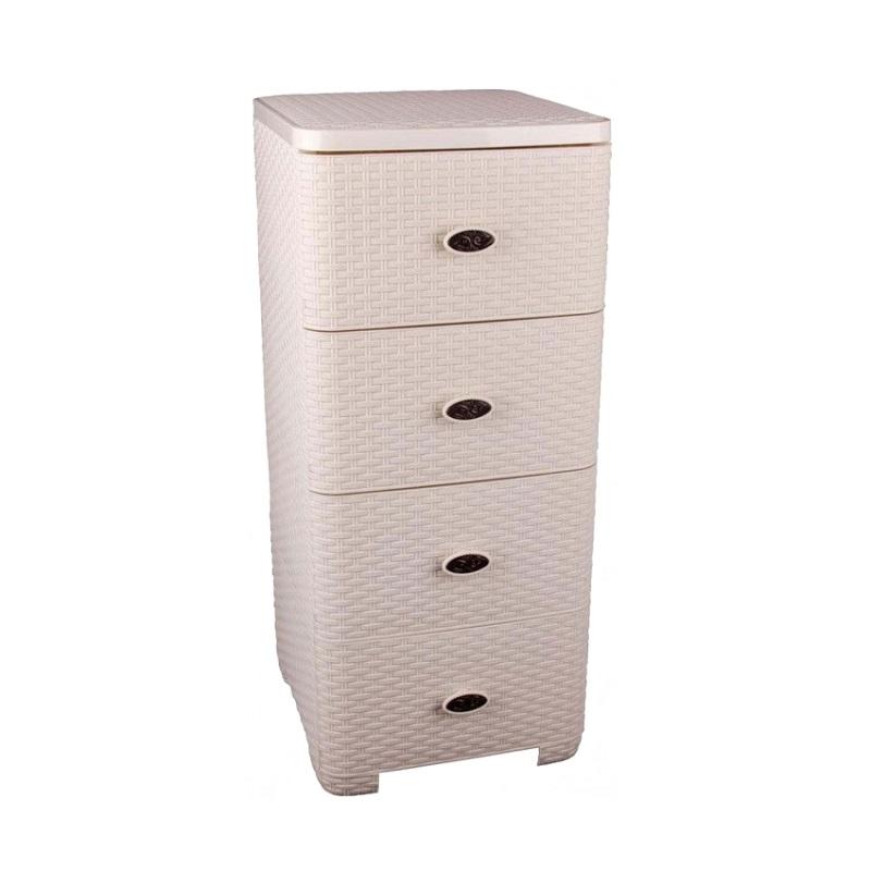 - Комод АЛЬТЕРНАТИВА Плетёнка пластиковый 4-х секционный слоновая кость 37,5*36*83см