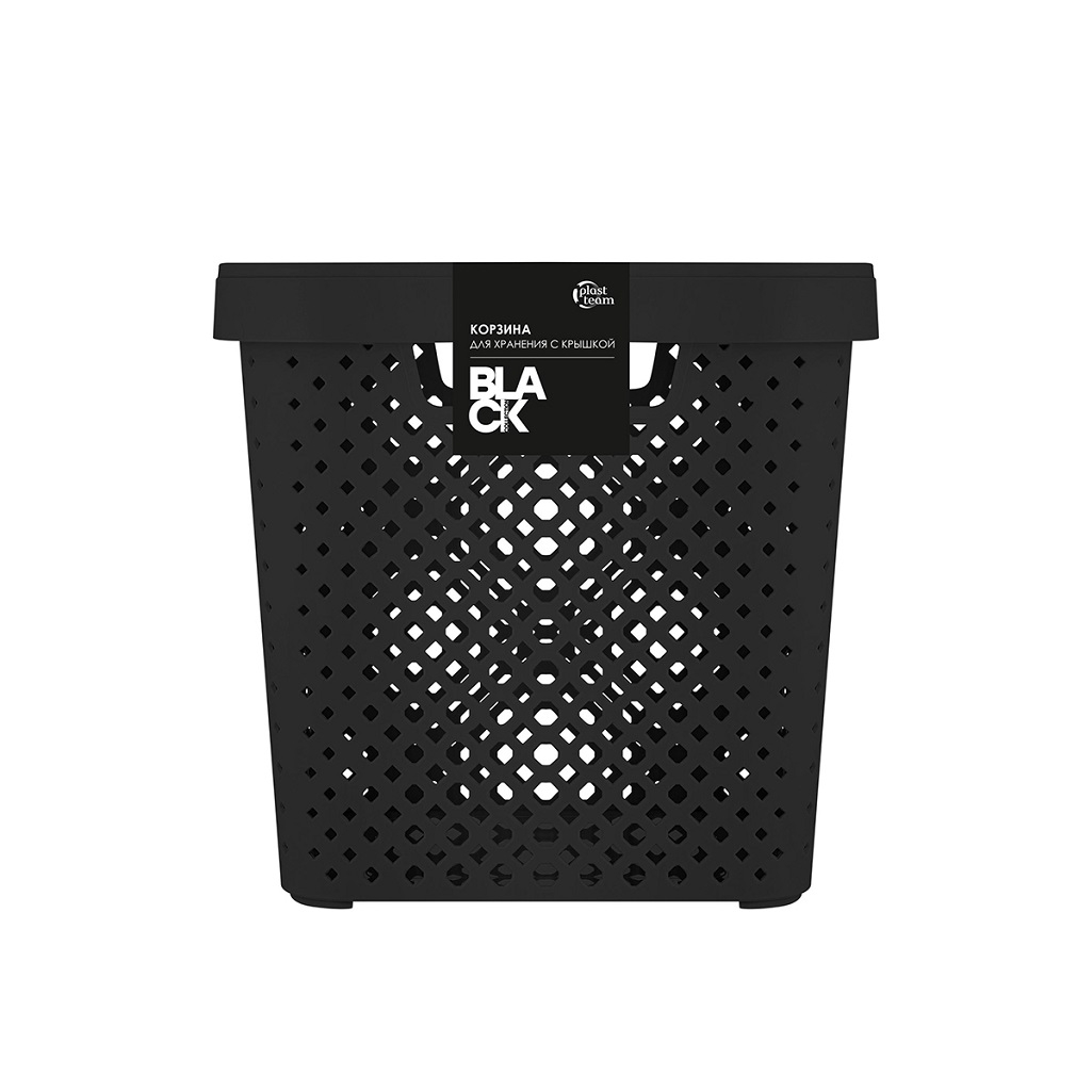 - Корзина для хранения PLAST TEAM Black с крышкой черная 30л