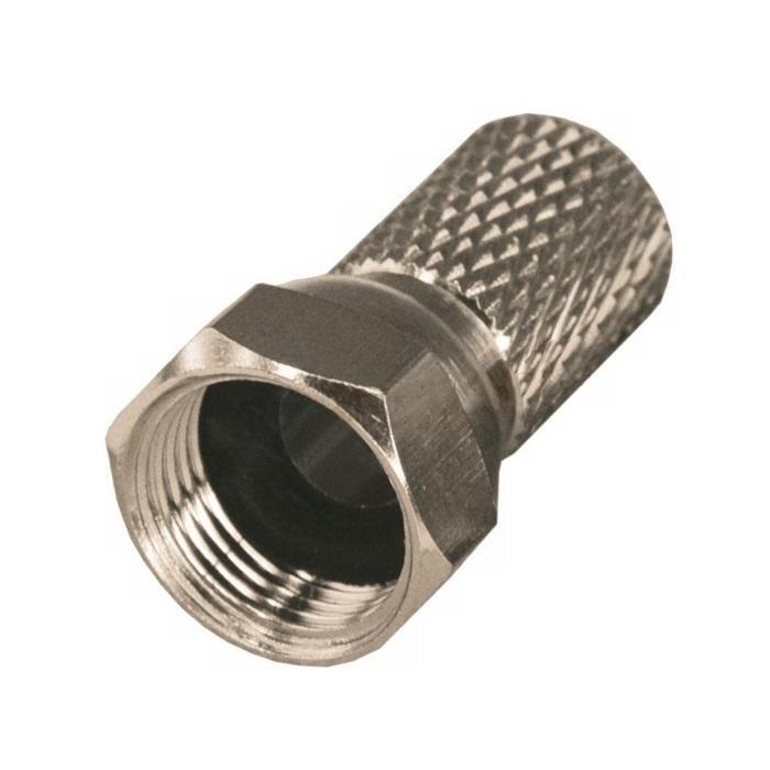 Разъем предназначен для соединения коаксиального кабеля волновым сопротивлением 75 Ом с телевизионным и видеооборудованием (ресиверы, телевизоры, всевозможная видеоаппаратура и т.д.). Разъем данного вида не имеет непосредственного штекера, поэтому роль штекера выполняет центральная жила кабеля, что позволяет избежать дополнительных потерь сигнала. F-коннектор изготовлен из никелированного сплава меди (биметалл) и имеет резиновый уплотнитель, который убережет от попадания влаги в контактные соединения. Разъем устанавливается на кабель методом накрутки гильзы разъема на внешнюю оболочку кабеля, после соответствующей зачистки контактов, и не требует применения каких-либо специальных инструментов. F-штекер выступает в роли своеобразного экрана за счет накручивания на оплетку кабеля для выполнения роли электрического контакта. Он подходит для кабелей типа RG-6, и других коаксиальных кабелей (SAT-50, SAT-703, DG-113) имеющих наружный диаметр около 6,8 мм. Данный ТВ компонент незаменим для построения сети кабельного телевидения, различных видеосистем и подключения эфирного телевидения.