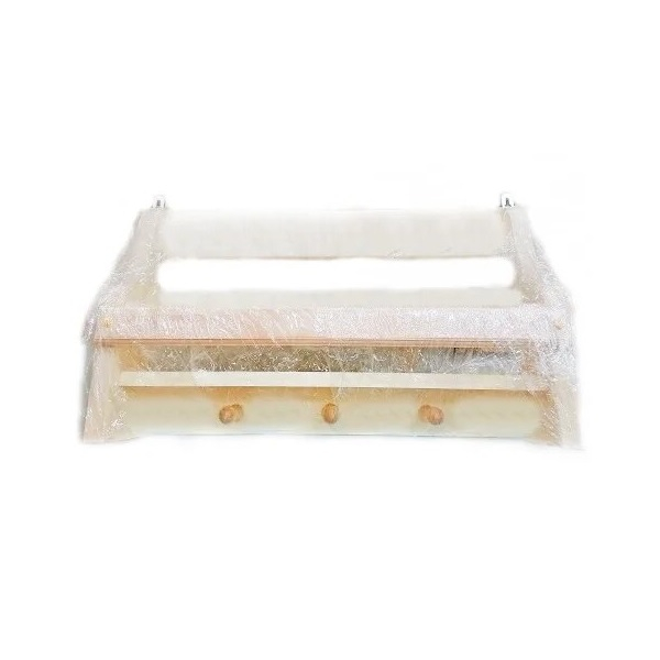 Полка с вешалкой подойдет для бани и сауны. Изготовлена из липы, поэтому долго сохраняет свои природные качества. На крючки можно повесить халат, полотенце, а на полке разместить моющие средства.