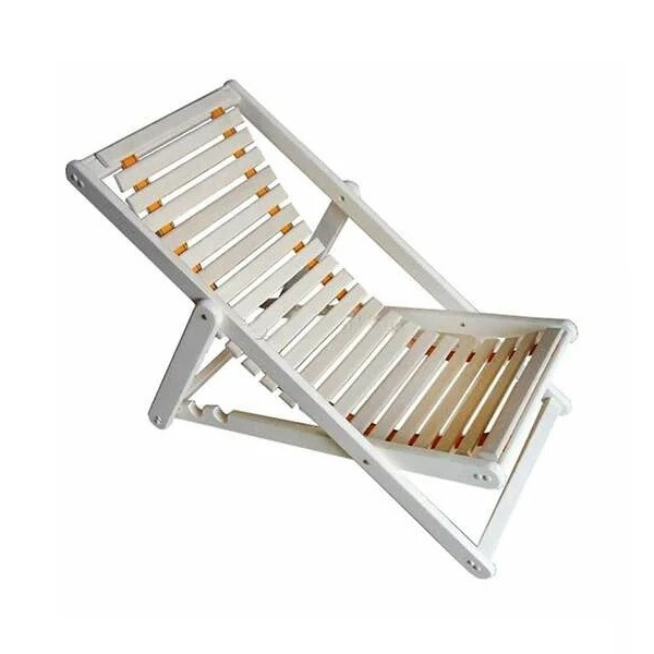 Деревянный раскладной лежак с подлокотниками — идеальная деталь для загородного отдыха.