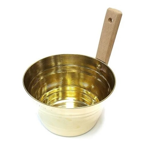 Ушат из латуни с деревянной ручкой 5 литров. Универсальная ёмкость для воды и необходимый аксессуар в любой бане или сауне.