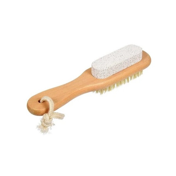 Деревянная двусторонняя щетка с пемзой предназначена для очищения и массажа кожи.