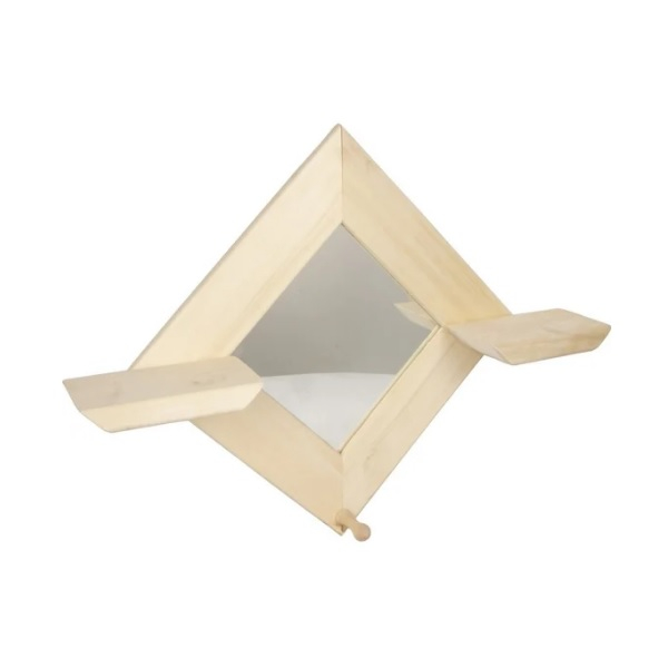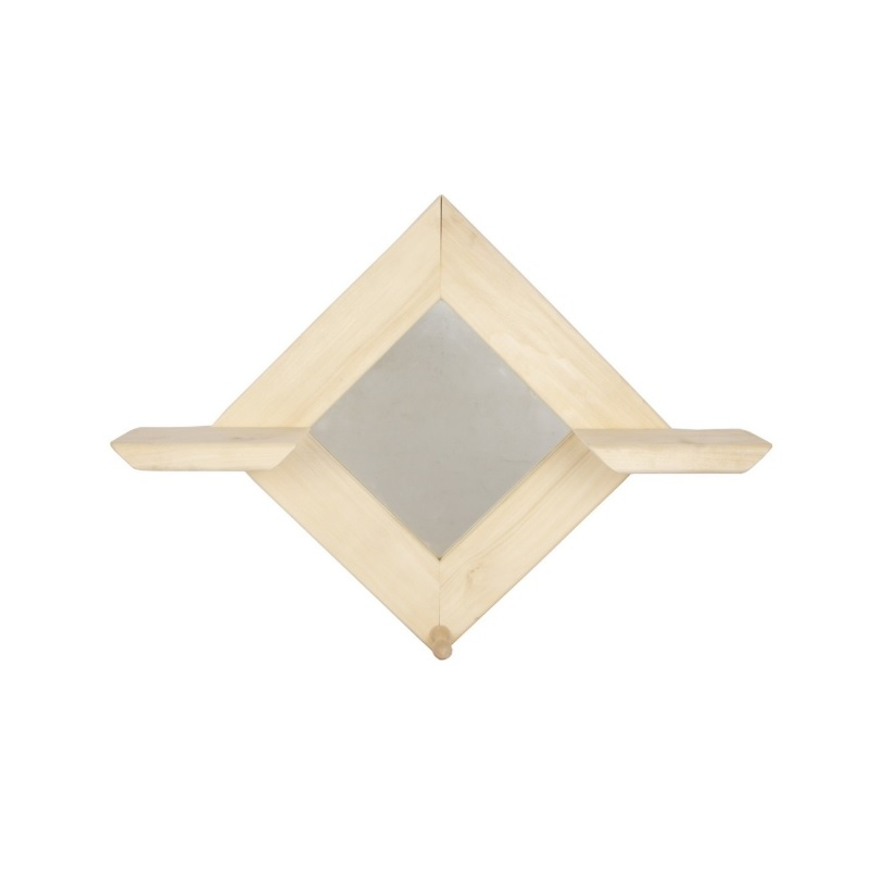 Зеркало Ромб 600х410 мм, липа 12-580 - это красивый и экологичный элемент интерьера. Данный вариант по праву может считаться одним из лучших решений для парных или саун, поскольку отлично переносит перепады температур и влажности, обладает замечательными внешними характеристиками, устойчив к образованию плесени и грибка. Наличие двух полочек для гигиенических принадлежностей и крючка для полотенца делает данное зеркало универсальным и функциональным.