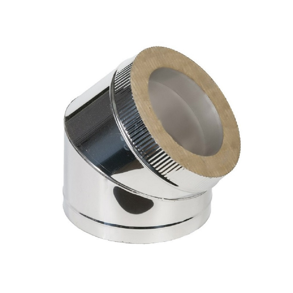 Отвод (колено) дымохода 200х300 мм, угол 45 гр., сталь 0.5 мм, сэндвич-конструкция - надежный и прочный компонент для прокладки трубопроводных систем. Этот элемент, изготовленный из высококачественной нержавеющей стали марки AISI 409, обеспечивает долговечность и устойчивость к коррозии, что делает его идеальным выбором для использования в домашних условиях.