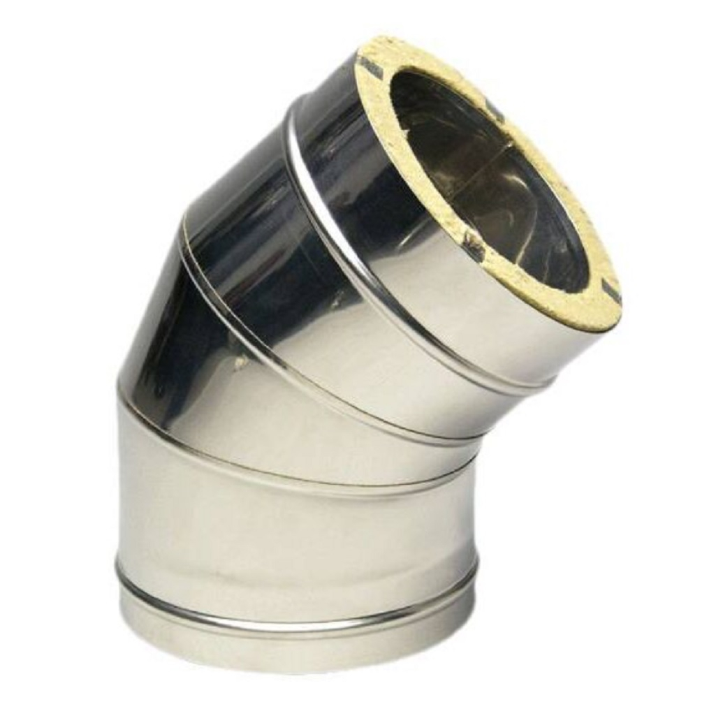 Базальтовый слой толщиной 35–40 мм предотвращает образование конденсата внутри дымохода. Наружный кожух из нержавеющей стали. Он обеспечивает долговечность элемента. Отсутствие зазоров при стыковке исключает риск попадания продуктов горения в помещение. Колено соединяется с другими элементами дымохода без дополнительного крепления. Дымоходы из стали могут быть окрашены в любой цвет и идеально сочетаться с интерьером комнаты и цветовой гаммой покрытия крыши. Отполированная поверхность, которая препятствует образованию сажи.