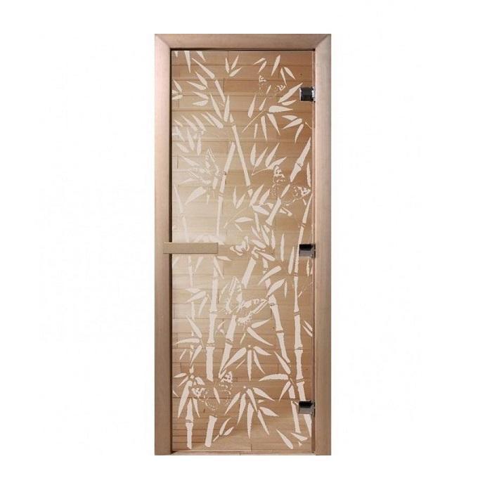 - Дверь Doorwood "Бамбук и бабочки" 1900х700мм (стекло 8мм, 3 петли, ольха)