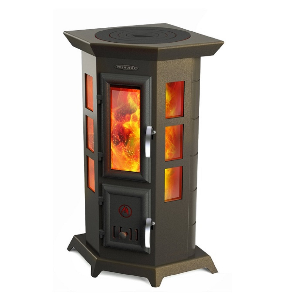 Печь-камин TMF Статика Квинта черная бронза, 10 кВт, d120 мм, до 150 куб.м