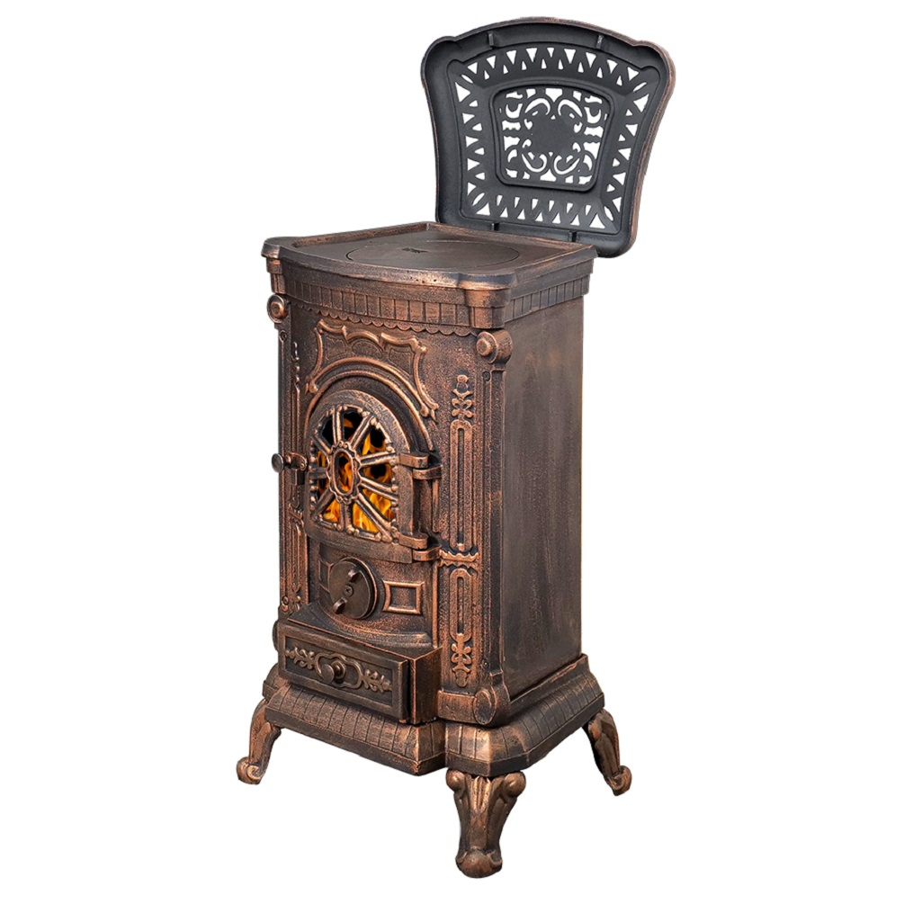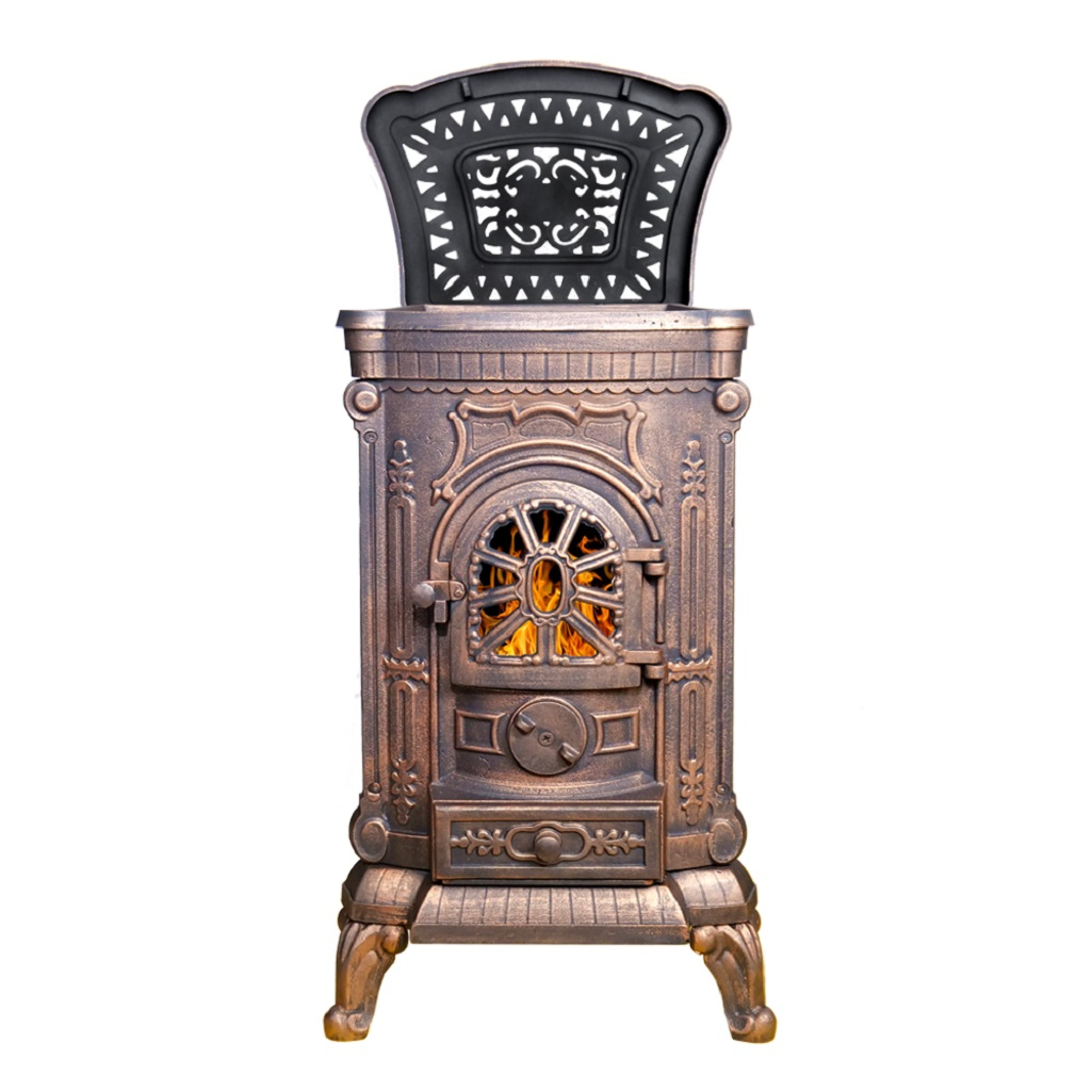 Печь-камин Везувий А-07 чугун, медь, 7 кВт, d 115 мм, до 140 куб.м