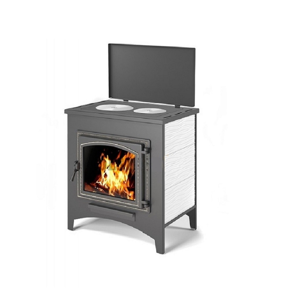 Печь-камин Везувий ПК-04 (240) 12 кВт, d115 мм, до 200 куб.м предназначена для бытового использования и рассчитана на установку в различных хозяйственных и жилых помещениях. Мощность печи-камина составляет 12 кВт и позволяет отопить помещение до 200 м3. Наличие большого жаропрочного стекла позволяет контролировать процесс горения и любоваться «живым огнем». Топка печи-камина футерована высококачественным шамотом, что защищает металл топки от воздействия высоких температур, продлевая тем самым срок службы печи, к тому же шамот отлично аккумулирует тепло, позволяя обогревать помещение в течение 2-х часов после окончания топки печи. Наличие верхней чугунной плиты с двумя комфорками позволяет использовать печь-камин для приготовления пищи. Боковые стенки облицованы керамическими вставками, обеспечивающими естественную конвекцию воздушных потоков, что позволяет быстро прогреть воздух в отапливаемом помещении.